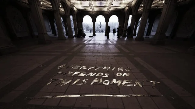 “Everything Depends On This Moment” is a “thing I have learned in my life.” I wanted to make artwork to share with people around me. Each letter is made of my handwriting on mirrored acrylic sheets. I installed them in 7 places around New York City: Madison Square Park, Flatiron, Union Square subway station, Grand Central Station, New York Public Library and Central Park. I believed that in different places, different audiences and different time, my work can be interpreted in different ways.